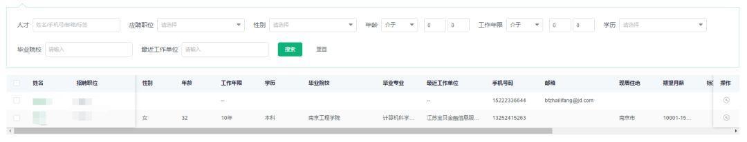 天猫商家可能需要通过商品ID去搜索商品,那是因为商家有精确找到某条商品数据的需求,且这个需求只能通过商品ID的搜索满足(商品名称很大概率上筛选出来的结果是多条);但是像对于人才库(见下图),一般用户通过姓名、手机号、邮箱就能定位某条数据,ID就没有作为筛选条件存在的必要了。