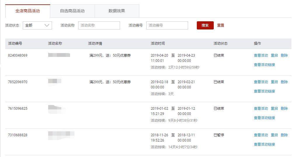 即符合正常思考或看事物的逻辑,以“天猫>店铺宝规则列表”为例,活动编号、活动名称点据1、2列后,紧接着是“活动详情”,“活动详情”可以算作是对“活动名称”的补充,“活动详情”+“活动名称”结合可以使用户大概了解这个活动是干嘛的了,再接着是这个活动哪天开始,哪天结束(活动时间),当前活动的状态(状态与活动时间是相对应的,在活动时间之后比较顺理成章)。