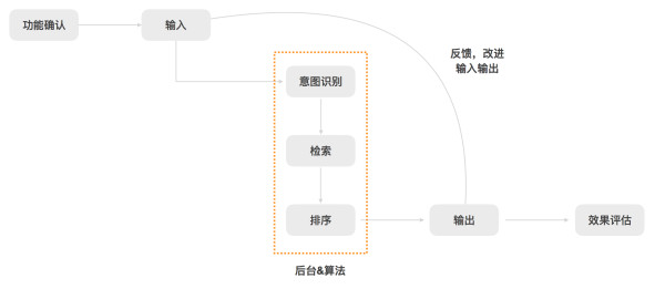 下图是搜索的流程图,虚线框中的主要是偏后台的工作,需要产品经理有适当的技术积累;剩余部分是会和产品、前端有交互的部分,需要产品经理进行产品设计。