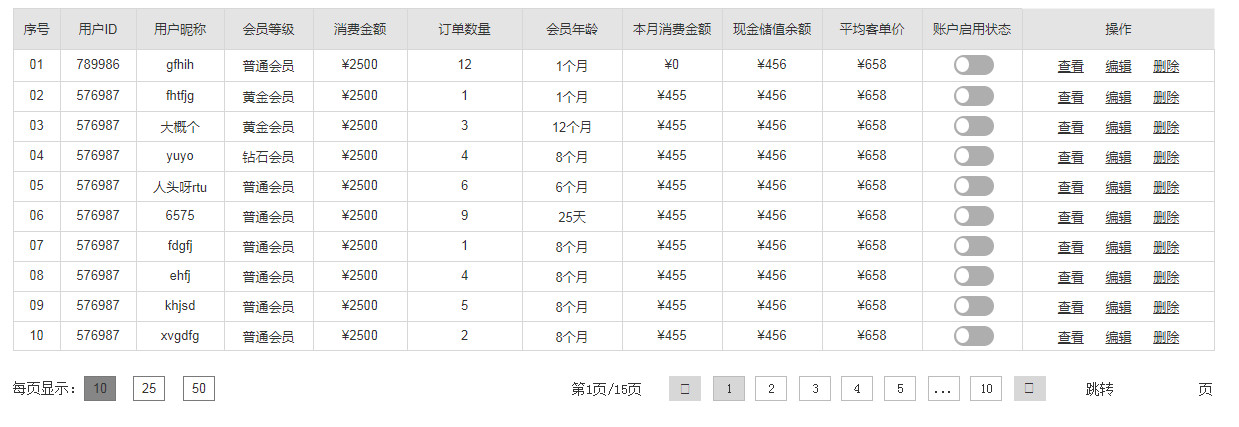 包含用户可在一级页面检索条件可以查询到的基本用户信息的表格呈现,这里重要的是,运营人员可能需要对某个消费层,或者年龄层的用户去做筛选,在设计用户列表中的用户检索条件时可以根据运营同学的工作需求去设置,以提升运营人员的效率。