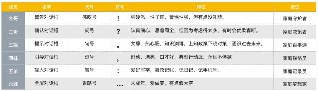 「对话框」这一户共有6名主要家庭成员,他们分别是: