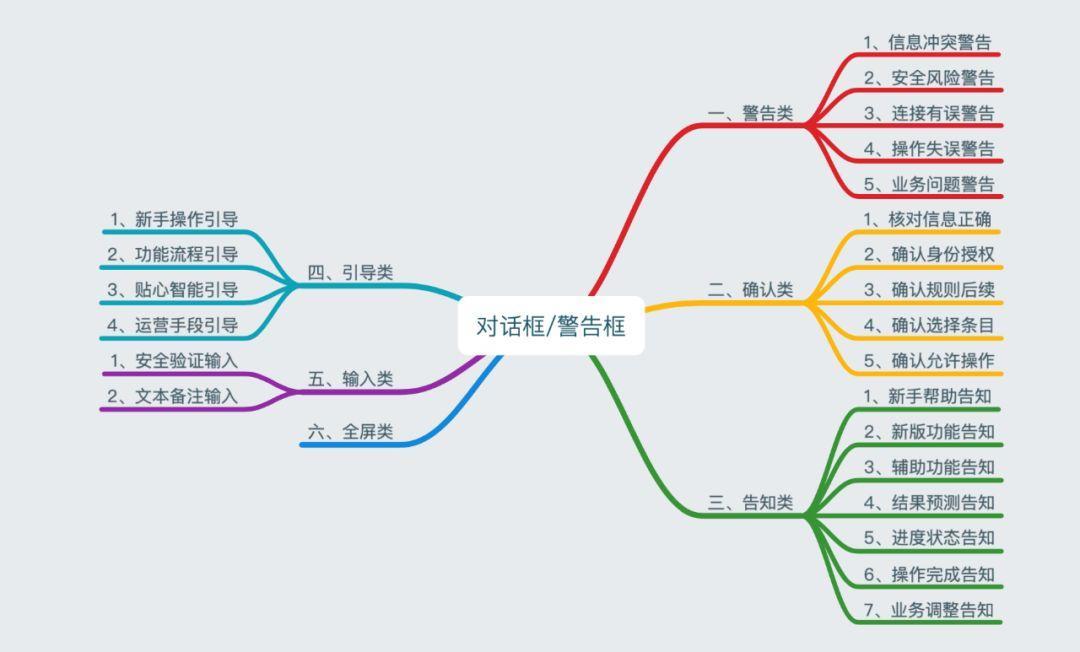 警告类 > 确认类 > 告知类 > 引导类 > 输入类 > 全屏类