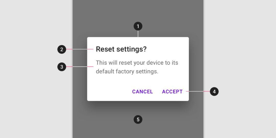 - 对话框-Dialog:Android的定义。涉及重要或有风险的操作,一般在屏幕中间位置,需用户决策。