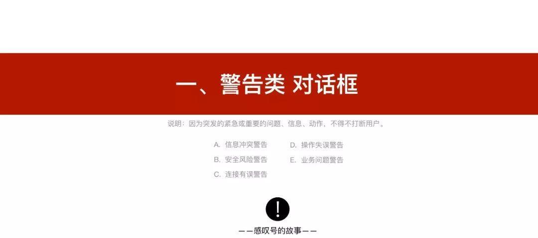 - 安全风险警告:出现账户、生命、财产等安全问题,或者操作后将产生无法挽回结果,比如,账号被盗风险、资金被刷风险、受伤风险等。