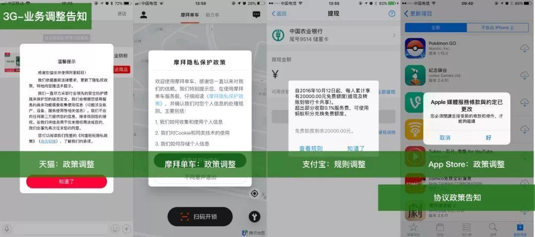 - 业务调整告知:协议政策的更新、个别业务的调整、第三方的免责声明