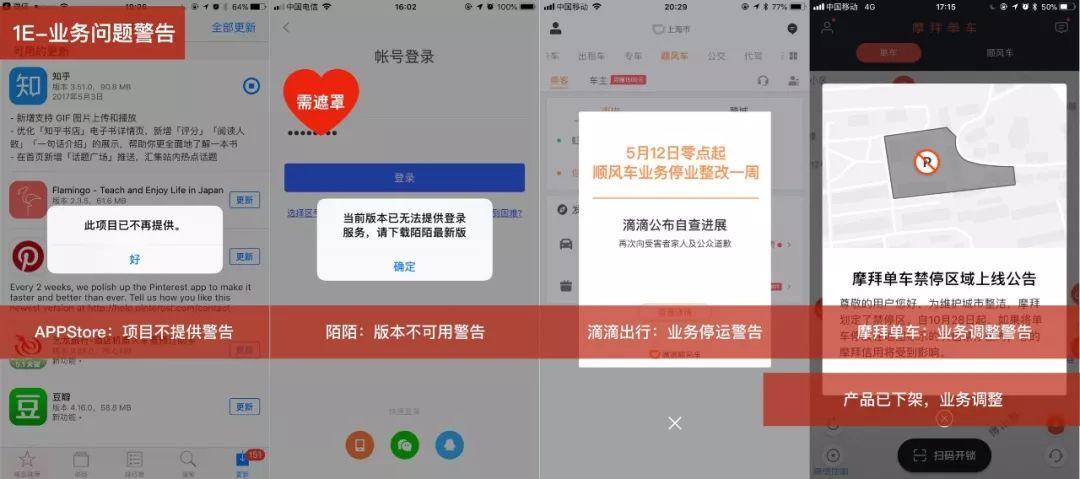 - 业务问题警告:「产品方」造成的业务问题,比如,产品下架,产品停止运营的紧急通知等。