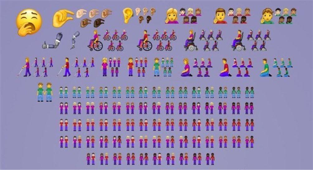 尊重个体差异: 2019年的 emoji 系列将引入更全面的表情符号来代表残疾人,比如坐轮椅的人、导盲犬、服务犬和聋人,其中还将包括对混血夫妇的支持。该系列 emoji 中有75个带有性别差异,230个包含了性别差异和不同肤色。