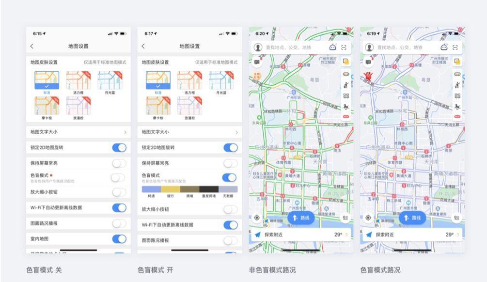 ▲ 高德地图提供色盲模式