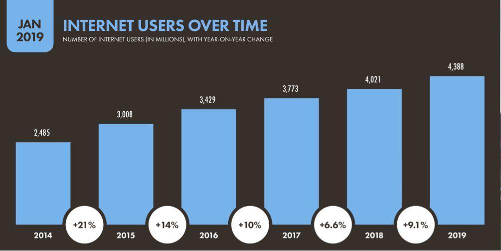 ▲ 《We Are Social&Hootsuite 2019》用户持续增长