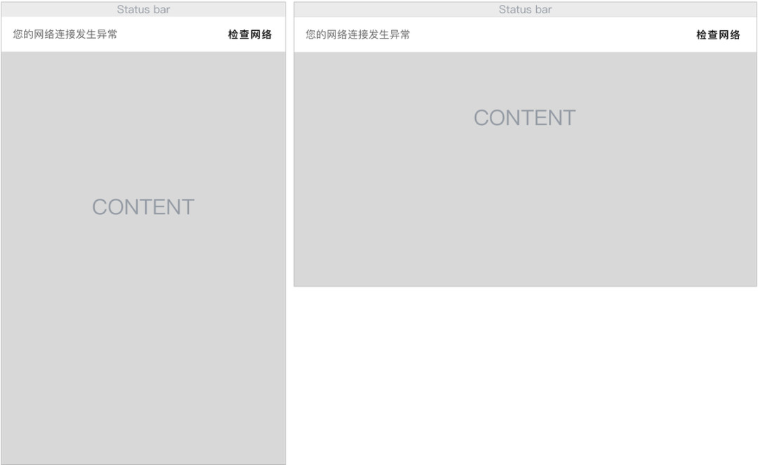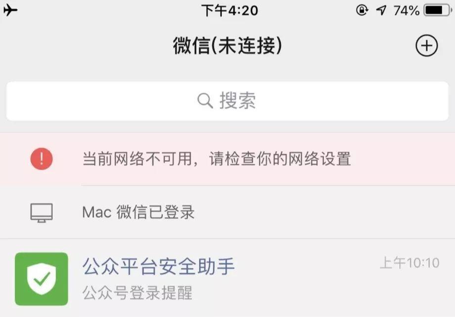 微信同样利用Banner在消息列表页告知网络异常状态,用户可以点击去查看详细问题,也可以选择去查看本地已缓存的消息内容,在网络恢复正常时自动消失。