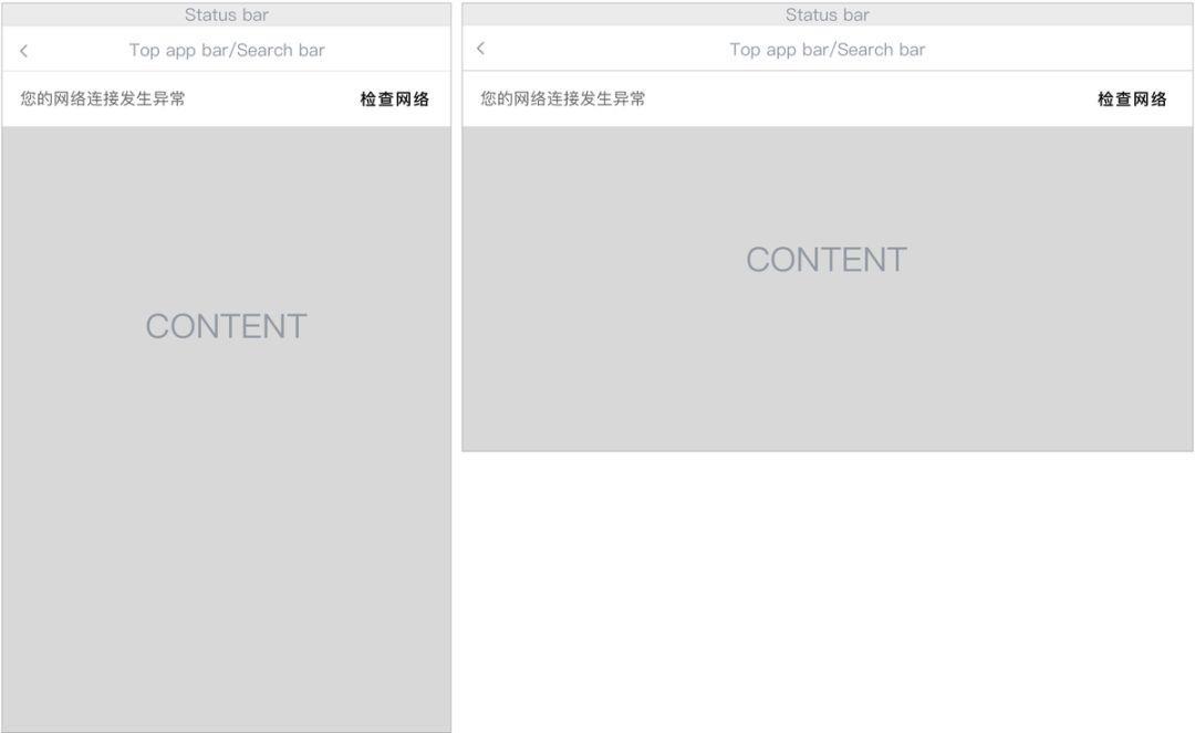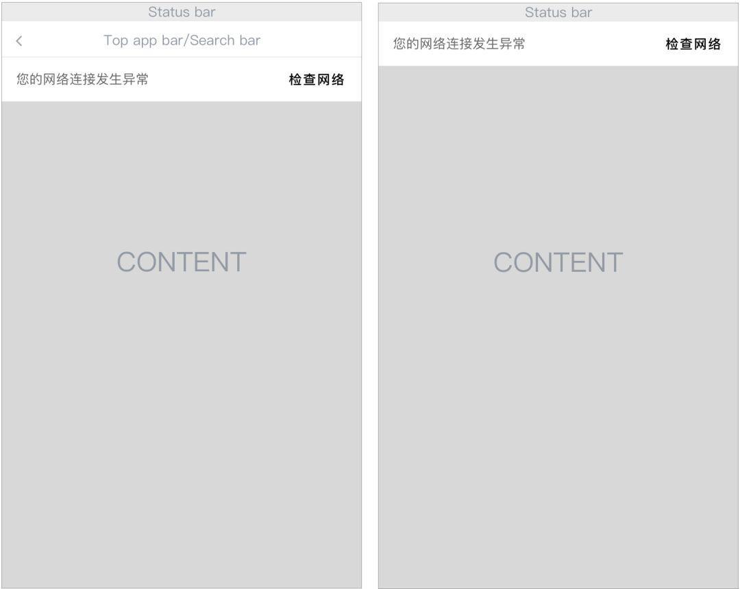 当页无Top app bar或Search bar时,显示在Status bar下方(不可发生重叠)。