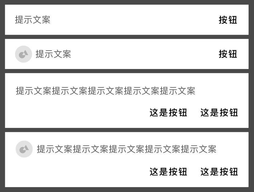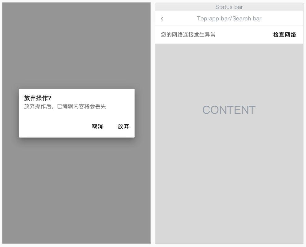 那么当我们需要给予用户一些长时间显示且不需打断用户操作的提示时,Banner绝对是你的最佳选择,此外Banner还可以兼容1~2个次要操作,也是兼具提示与操作功能的好帮手。