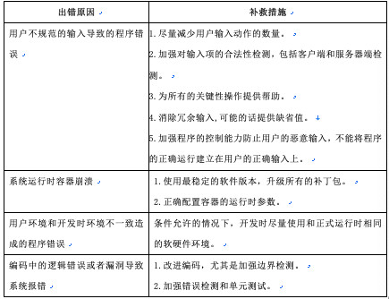 本设计要考虑的出错情况主要是指软件运行、系统部署时可能出现的异常,包括: