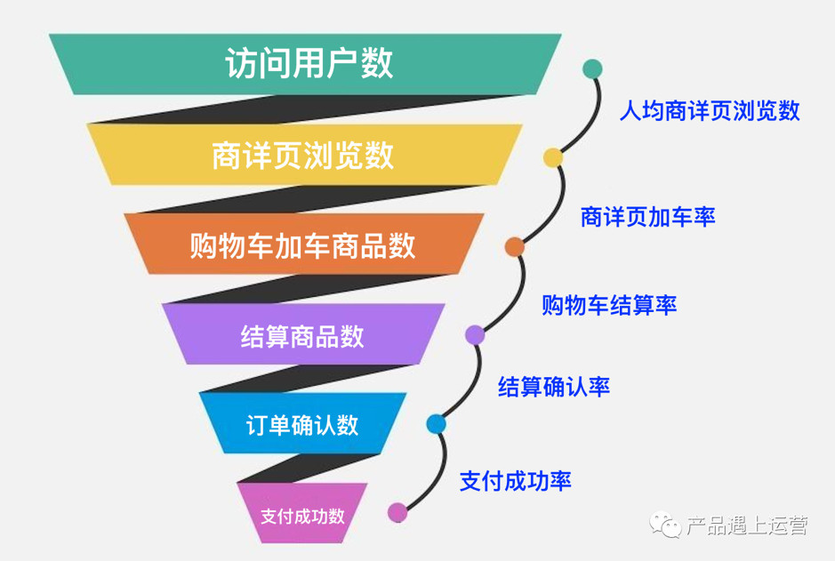 以此类推,产品和运营负责的转化率指标,则可以沿转化漏斗拆分为首页到商详、搜索到商详、商详加车率、购物车结算率、支付成功率等,通过逐层递进的拆分具体到各个团队进行分解,成为各自的北极星指标。