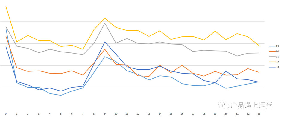猜对了,0点出现大流量!9点,14点,19点的流量峰值符合移动端用户在早晨通勤时间、下午回到座位、傍晚通勤时间的访问规律。但0点出现如此之大的流量,十分异常,就应当触发专题分析。