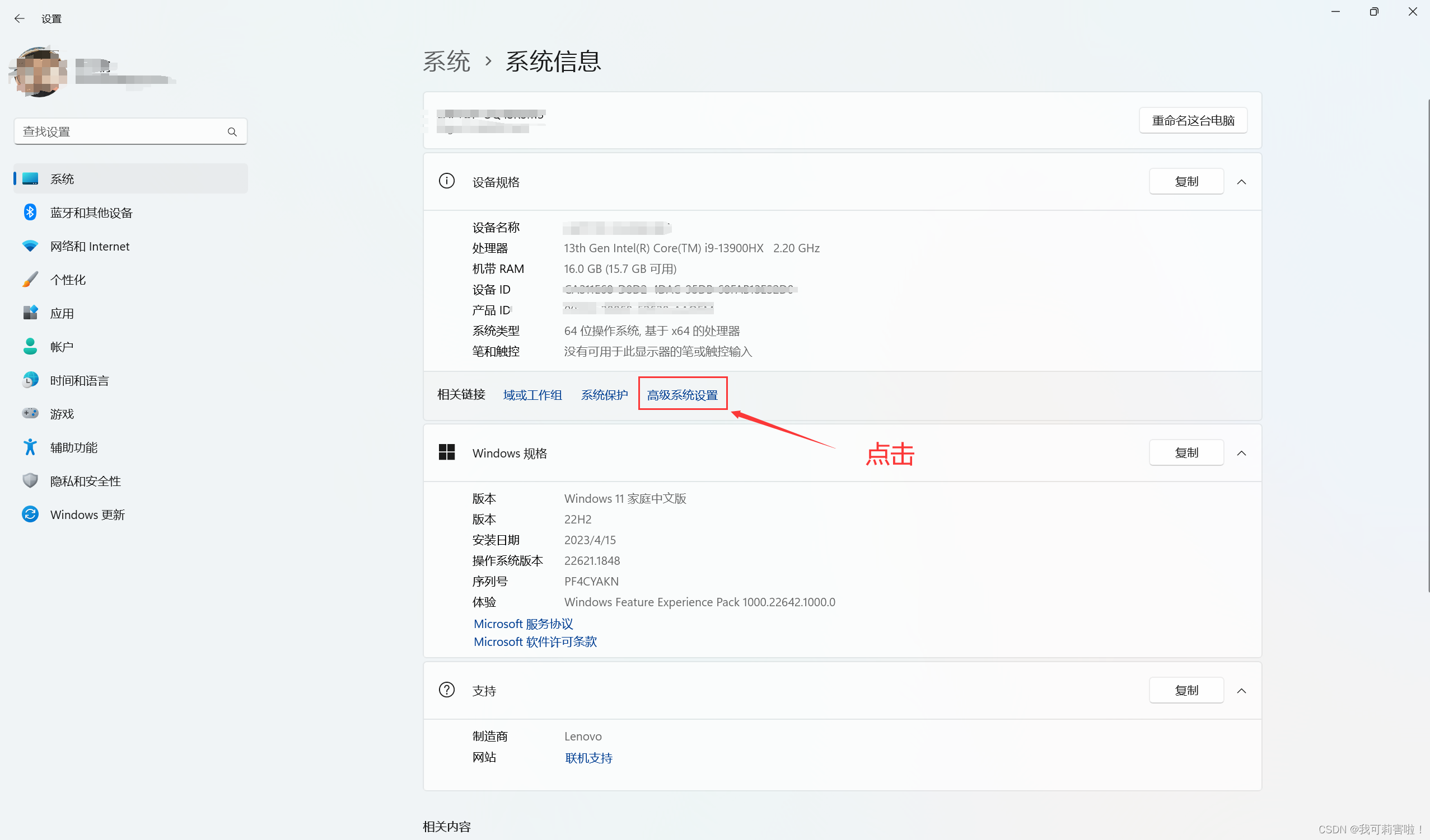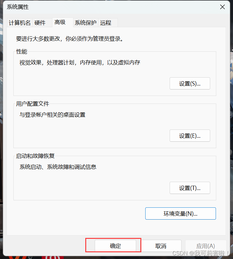 笔者这里是win11系统,其他系统也类似,如果又不会的同学可以去搜索如何打开高级系统设置