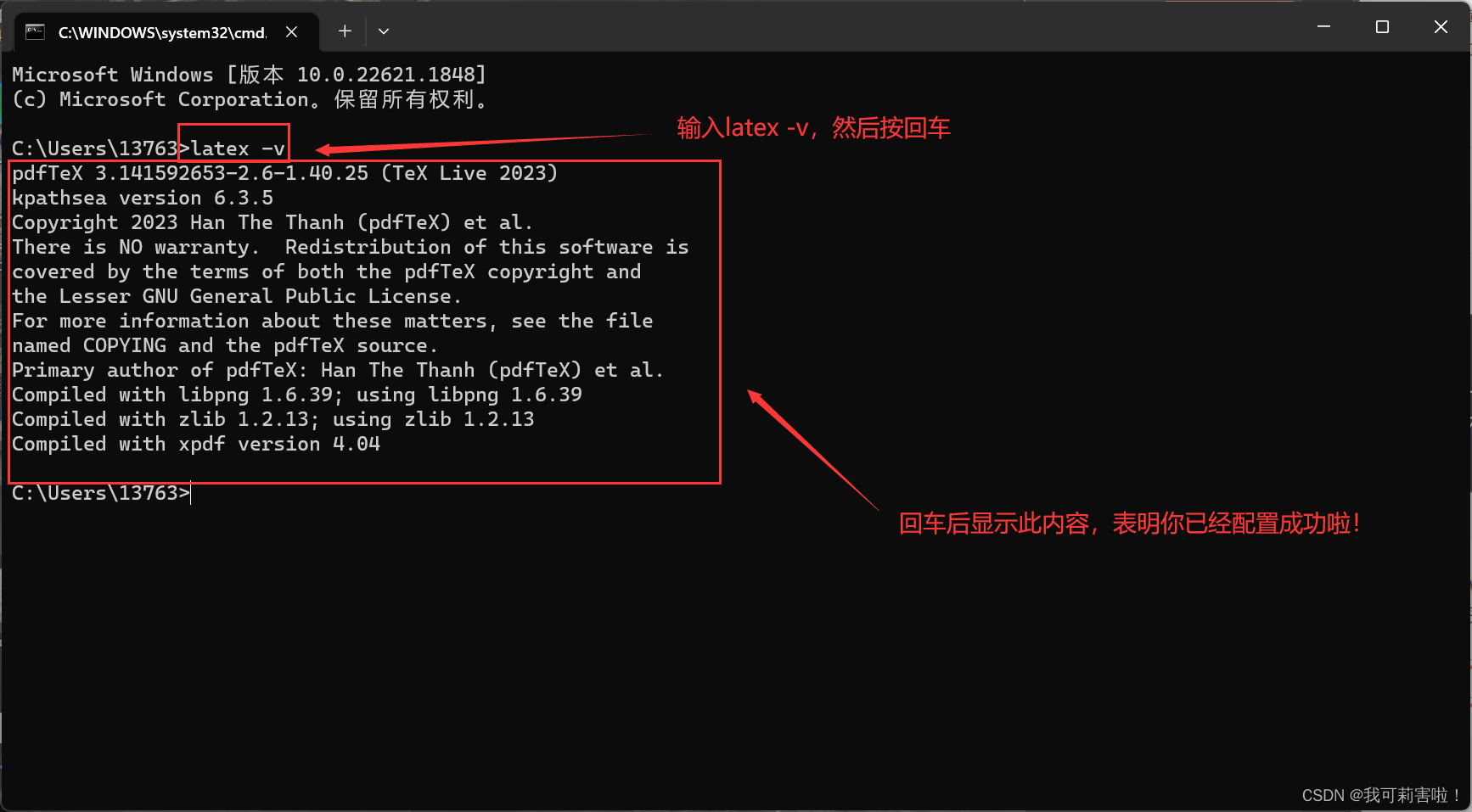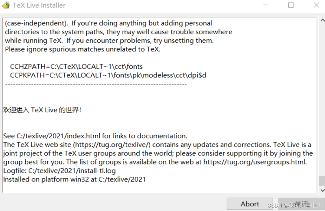 至此,安装Texlive以及配置环境变量已经ok啦,你已经完成了进度的 2 3 \frac{2}{3} 32