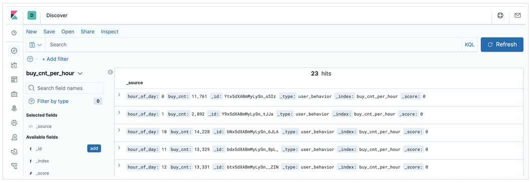 最后根据 类目名称分组,统计出 buy 的事件数,并写入 Elasticsearch 中。