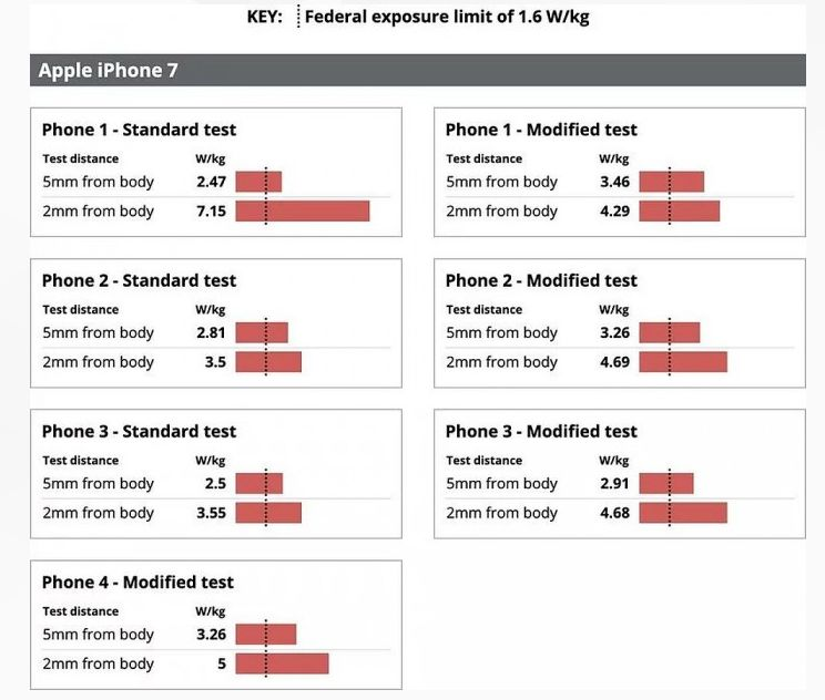 此次的实验,芝加哥律师事务所Fegan Scott声称测试是在FCC认证的实验室进行,其距离从0到10mm不等,以测量触摸或接近人体时发射的射频辐射。
