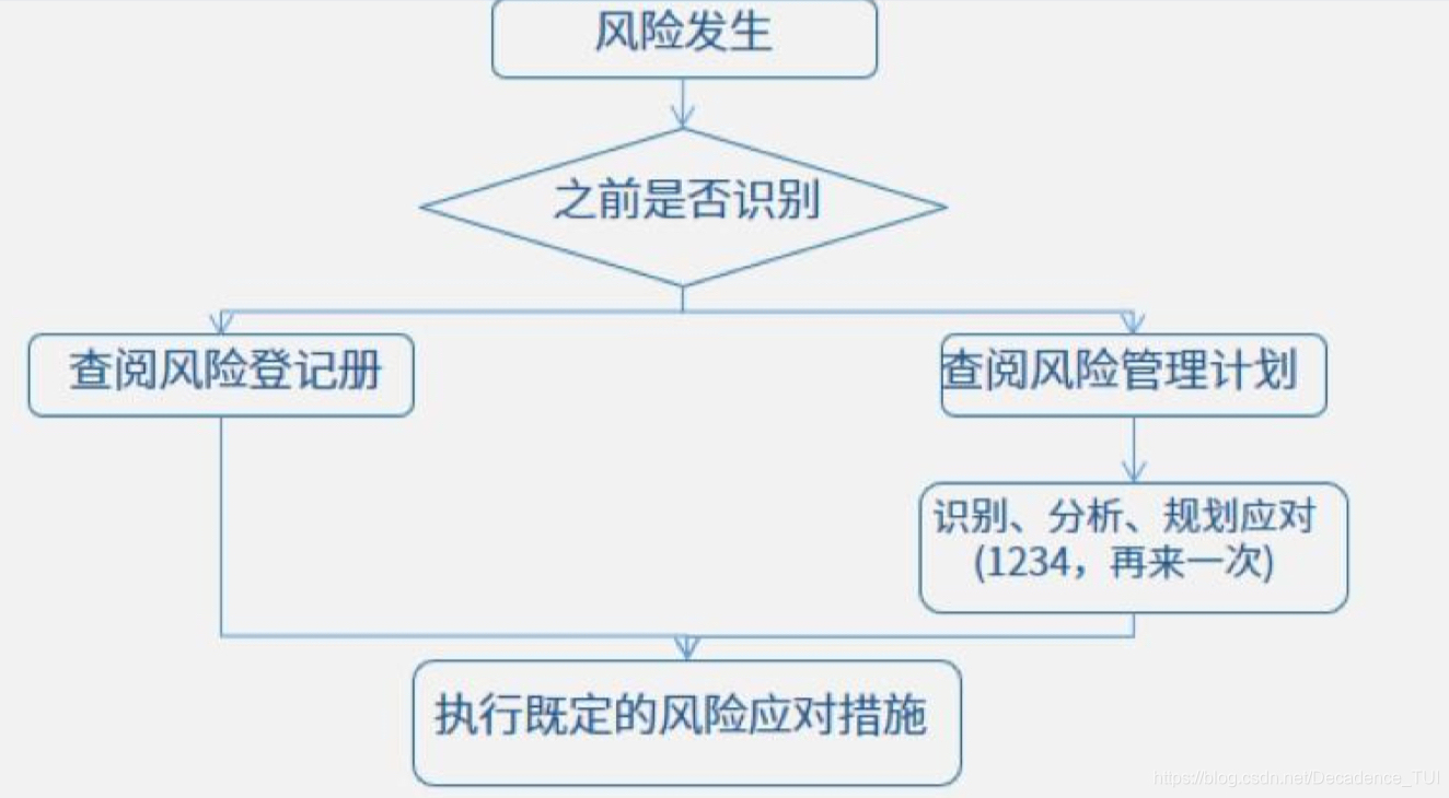| 应急计划 | 事先制定的风险应对计划。是指当一项可能的风险事件实际发生时项目团队将采取的预先确定的措施 |