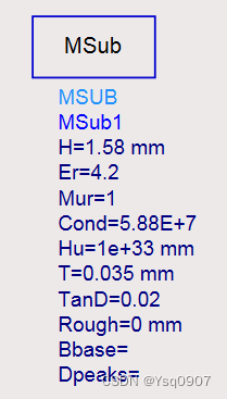 2.选择MSUB添加到原理图中,修改基片参数;