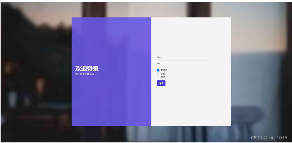 管理员登录,通过填写注册时输入的用户名、密码、权限进行登录,如图5-1所示。