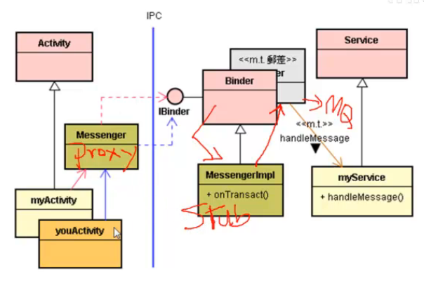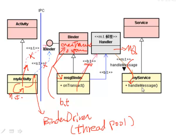 ac首先会启动BinderDriver,从线程池中取出线程,然后依次执行Binder()下的函数 ,bt将Msg丢到MQ,