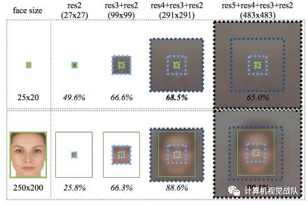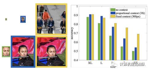 左图: 直观来看,扩大感受野范围,可以有效帮助识别“small”人脸;(对于大的人脸,这点影响不是很大);