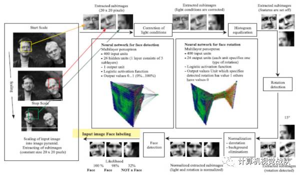 基于统计理论的方法是指利用统计分析与机器学习的方法分别寻找人脸与非人脸样本特征,利用这些特征构建分类,使用分类进行人脸检测。它主要包括神经网络方法,支持向量机方法和隐马尔可夫模型方法。基于统计理论的方法是通过样本学习而不是根据人们的直观印象得到的表象规律,因此可以减小由于人眼观测不完整和不精确带来的错误而不得不扩大检测的范围,但是这种方法需要大量的统计特性,样本训练费时费力。