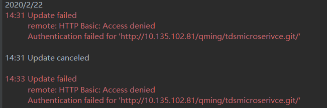 Authentication failed for 'http://10.135.102.81/qming/tdsmicroserivce.git/'