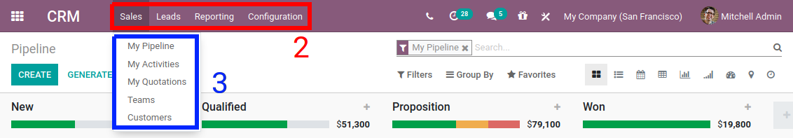 - 根菜单,显示在App切换器中(Odoo社区版切换器是一个下拉菜单)