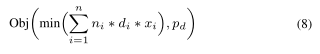 表示与磁盘消耗相关的标准相对于其他标准的优先级。换句话说,(8)指出,根据ILP问题的其他约束条件,所选和部署的VNSF消耗的磁盘空间总和应尽可能地最小化。