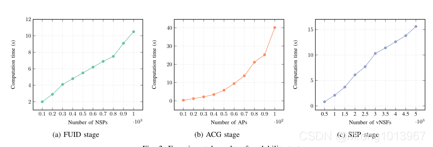 图3显示了该可伸缩性评估的结果。图表中绘制的每个值代表平均值,通过100次独立迭代的结果计算得出。