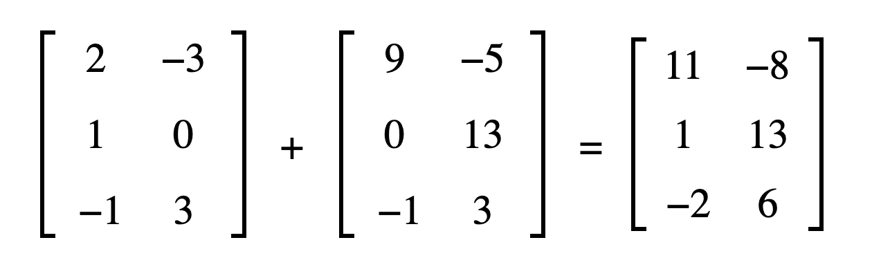当相同规模的矩阵之间进行相加时,是对应的位置两两相加: