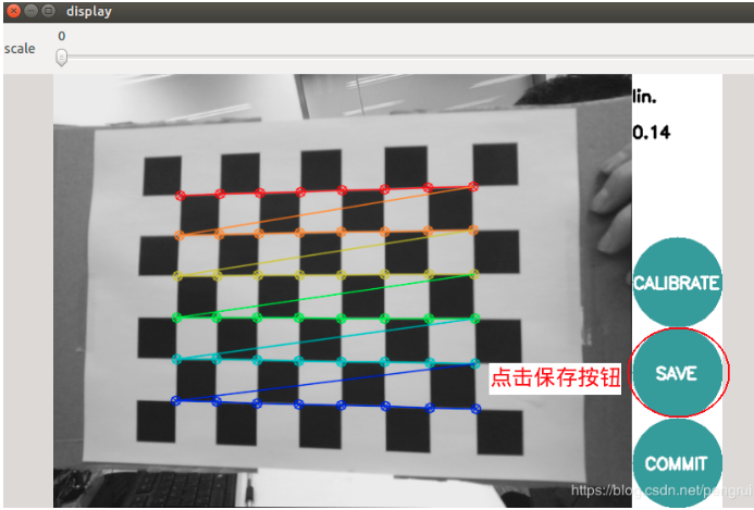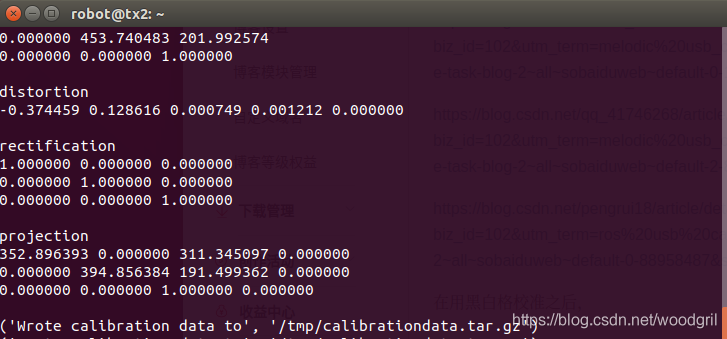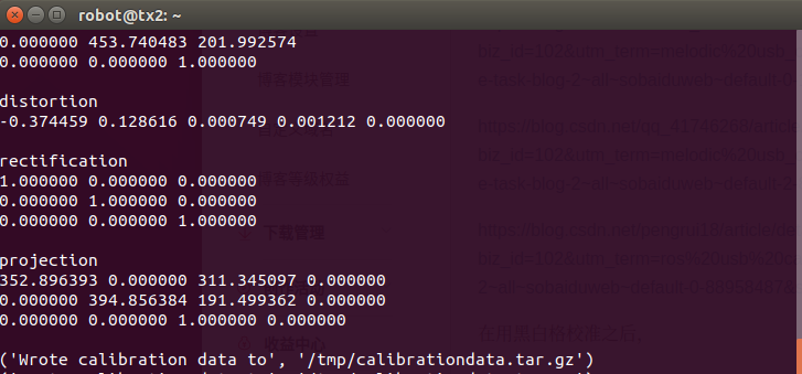 在用黑白格校准之后,点击“save"之后会在终端出现下图中的最后一行