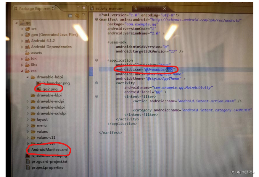 将qq2的图片加入到res里drawable-hdpi