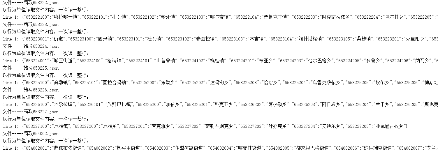 import java.io.InputStreamReader;public class ReadFromFile {/*** 以行为单位读取文件,常用于读面向行的格式化文件*/public static void readFileByLines(String fileName, String writefileName) {File file = new File(fileName);BufferedReader reader = null;try {System.out.println("以行为单位读取文件内容,一次读一整行:");reader = new BufferedReader(new InputStreamReader(new FileInputStream(file), "UTF-8"));String tempString = null;int line = 1;// 一次读入一行,直到读入null为文件结束while ((tempString = reader.readLine()) != null) {// 显示行号System.out.println("line " + line + ": " + tempString);line++;appendMethodB(writefileName, tempString + "\r\n");}reader.close();} catch (IOException e) {e.printStackTrace();} finally {if (reader != null) {try {reader.close();} catch (IOException e1) {}}}}/*** 递归讀取目录下的所有文件及子目录下所有文件*/public static void findDir(String patn, String writefileName) {File dir = new File(patn);if (dir.isDirectory()) {System.out.println("获取文件夹下的集合");String[] children = dir.list();// 递归读取目录中的子目录下for (int i = 0; i < children.length; i++) {String chidPaath = patn + '/' + children[i];File child = new File(chidPaath);if (child.isDirectory()) {System.out.println("文件夹");findDir(chidPaath, writefileName);} else {System.out.println("文件-----讀取" + child.getName());readFileByLines(chidPaath, writefileName);}}} else {readFileByLines(patn, writefileName);}}/*** B方法追加文件:使用FileWriter*/public static void appendMethodB(String fileName, String content) {try {// 打开一个写文件器,构造函数中的第二个参数true表示以追加形式写文件FileWriter writer = new FileWriter(fileName, true);writer.write(content);writer.close();} catch (IOException e) {e.printStackTrace();}}public static void main(String[] args) {String path = "C:\\Users\\Administrator\\Desktop\\data_location-master";// 选择你的文件String writeFile = "D:\\JavaCode1.text";//选择你要生成的文件File file = new File(writeFile);if (!file.exists()) {try {file.createNewFile();} catch (IOException e) {e.printStackTrace();}}ReadFromFile.findDir(path, writeFile);}