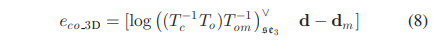 - 残差组成:相机-物体残差由两部分。第一项是3D观测项:地图中的object与当前观测的误差(观测是单帧检测到的object的位姿和大小,此项只有当单帧3D检测较为精确时才加入,例如在RGBD数据上进行3D detection时);第二项是2D观测项:将地图中的object的cubiod投影到当前帧与检测出的2D bounding box计算IOU;2D观测项相比3D项的不确定度较低,因为一般2D检测较3D检测精确一些。