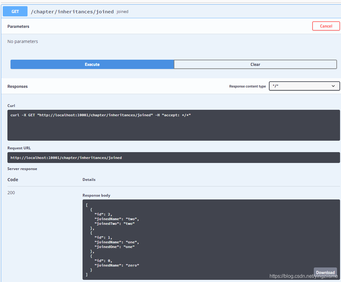 @Autowiredprivate InheritanceJoinedRepository inheritanceJoinedRepository;@Autowiredprivate InheritanceJoinedOneRepository inheritanceJoinedOneRepository;@Autowiredprivate InheritanceJoinedTwoRepository inheritanceJoinedTwoRepository;@PostMapping("/single")public InheritanceJoinedEntity single(@RequestBody InheritanceJoinedEntity inheritanceJoinedEntity) {return inheritanceJoinedRepository.save(inheritanceJoinedEntity);}@PostMapping("/joined/one")public InheritanceJoinedOneEntity joined(@RequestBody InheritanceJoinedOneEntity inheritanceJoinedEntity) {return inheritanceJoinedOneRepository.save(inheritanceJoinedEntity);}@PostMapping("/joined/two")public InheritanceJoinedTwoEntity joined(@RequestBody InheritanceJoinedTwoEntity inheritanceJoinedEntity) {return inheritanceJoinedTwoRepository.save(inheritanceJoinedEntity);}@GetMapping("/joined")public List joined() {return inheritanceJoinedRepository.findAll();}@GetMapping("/joined/one")public List joinedOne() {return inheritanceJoinedOneRepository.findAll();}@GetMapping("/joined/two")public List joinedTwo() {return inheritanceJoinedTwoRepository.findAll();}