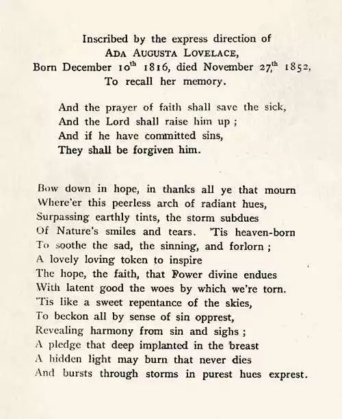 在 IT 行业,性别的不均衡是个经常出现的话题。因为在这个领域从业的女性比例很低,所以有很多公益组织致力于提高女性在 IT 业的参与度。也有不少人认为整个行业对女性存在着一定程度的偏见和歧视,因为一些人认为女性从事技术工作的能力要弱于男性。 事实上,计算机这个行业的发展从一开始就是和女性密不可分的。Computer 这个词是在计算机出现之前很久就有的,指的是以计算为职业的人。因为女性通常比较细心,进行这样的工作时出错比较少,所以当时的 computer 大部分是女性。这些女性为很多科学上的关键发明发现和二战的胜利做出了重要贡献。二战期间科学家衡量所需计算能力的单位不是 megahertz,不是 teraflops, 而是 kilo-girls --- 也就是相当于一千个女孩的算力。 现代程序员这个职业的鼻祖也是一位女性,并且她的时代比我们更熟悉的图灵、冯·诺伊曼等其他计算机领域的先驱早了一个世纪。她就是 Ada Lovelace. Ada Lovelace 画像 Ada 的父亲是英国著名诗人拜伦,其实她的原名是 Augusta Ada Byron,后来因为她丈夫继承了 Earl of Lovelace 的爵位,所以她以 Ada Lovelace 这个名字为人所知。拜伦在 Ada 几周大的时候就离开了英国,并且后来再也没有和她相见(虽然拜伦一直在桌上放着 Ada 的照片,并且在诗里写到她)。她的母亲为了不让她走上他父亲那样「疯狂」的文艺道路,让她从小就学习逻辑和数学,希望她能成为一个理性的人。她从小和外婆一起生活,虽然母亲照顾她不多,但是坚持要让她得到好的教育。那个时候英国的学校不对女性开放,不过富人家的女孩往往可以从私人教师那里得到好的教育。在 12 岁时她就很痴迷于研究怎么样让蒸汽驱动的机器像鸟一样飞行。 作为少有的出身上流社会、痴迷于科学、并受过很好教育的女孩,Ada 在当时英国科学界的社交圈是个活跃和受到欢迎的人,身边可谓群星闪耀。她和法拉第、狄更斯等知名人物都是朋友,她也以此为便来寻找各种学习机会。1833 年,她认识了剑桥大学的数学教授查尔斯·巴贝奇(Charles Babbage)并和他成为朋友。当时巴贝奇的头衔是:Lucasian Professor of Mathematics。在他之前,牛顿曾经拥有这个头衔,而它现在的主人是霍金。巴贝奇把 Ada 介绍给了德摩根定律和数学归纳法的发明者奧古斯塔斯·德摩根(Augustus De Morgan),德摩根成了她的数学老师。在给 Ada 母亲的信里,德摩根曾经说到她女儿在数学方面有出众的能力,有望成为第一流的数学家。法拉第也曾经说她是「科学界正在升起的新星」。 Ada 跟随德摩根学习微积分的笔记 巴贝奇知道 Ada 母女都对数学很有研究后,邀请她们参观他发明的差分机(difference engine)。因为人工计算经常出错,所以他想用一种手摇或者蒸汽驱动的机器来进行计算。Ada 马上被 Babbage 的发明吸引住了。事后她给巴贝奇写信要来了差分机的图纸,决定一定要弄明白它的工作原理。 巴贝奇不久后又设计出了叫分析机的机械式通用计算机。由于在当时没有得到英国政府的重视,缺少必要的资源,一直到巴贝奇辞世分析机都没有被实际制造出来。但它的设计逻辑非常先进,是一百多年后电子计算机的先驱。 巴贝奇请 Ada 帮忙翻译意大利工程师 Luigi Federico Menabrea 写的一篇关于分析机的论文。她除了把文章从法文翻译成英文外,补充了很多自己的批注和笔记,增加的部分有原文的三倍长。她的笔记和翻译一起发表在英国的一个科学期刊。Ada 的署名是 A.A.L.,也就是 Augusta Ada Lovelace 的缩写。在她的笔记里 Ada 描述了如何用程序来处理字母、符号、甚至音乐等其它信息,而不仅仅是数字。她还描述了分支、循环等在现代程序设计语言里常见的基本流程控制机制。也是在这篇笔记里,她发表了人类的第一个程序:计算伯努利数列,如果当时分析机实际存在,她的程序是可以正确运行的。 Ada 写给巴贝奇的信件 Ada 生活的时代远远早于她所应属于的时代,她的大部分成果所需要的机器都只存在于她的脑中,无法实际制造,这个世界用了很久才追上她。虽然是巴贝奇设计了分析机,但是 Ada 是最早预见通用计算机的潜力的人,其他人只想到了用机器处理数字。她在给一个朋友的信中写到,她在研究大脑如何产生思维,以及神经如何产生感觉,并希望能给神经系统建立一个数学模型,而人工神经网络的模型在电子计算机被发明后才出现。Ada 留下的手稿里有一个论点是机器将可以做人能做的任何事情,但创新性的思考除外,这是程序的局限性。图灵把它称为 Lady Lovelace's objection,他受此启发而设计了我们称为「图灵测试」的模仿游戏。她的成就是在当时对女性存在诸多限制的大背景下取得的,学校教育的不平等只是其中之一,比如她作为女性不能进入皇家图书馆。 伦敦圣詹姆士广场的蓝牌 — 「英格兰的遗产、计算的先驱、Lovelace 伯爵夫人 Ada,1815 - 1852」 Ada 在 22 岁之后就一直生活在病痛中,因为经常需要食用镇痛药物而性情改变,在 36 岁时因为癌症而英年早逝。她在弥留之际曾经让狄更斯在床边为她诵读他书里关于死亡的描述。她在死亡的边缘坚持了三个月之久,当时一位有名的医生说「她不可能活那么久,唯一的解释是她充满活力的大脑不愿死去」。虽然和父亲拜伦从她出生五周后就再未谋面,并且她的母亲一直尽量避免让 Ada 受拜伦影响,她还是选择葬在了拜伦的墓边,巧合的是 Ada 和拜伦都是 36 岁去世