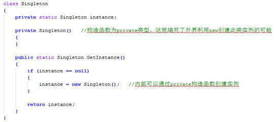 重点:将构造函数设置为private,只能内部调用;用一个静态字段来存储对象。