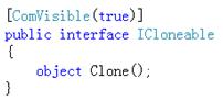 C#已经在FCL(Framework Class Library)中定义了一个接口——IColoneable,因此不需要我们在自己定义该接口,只需要在用到的地方实现即可。IColoneable接口只定义了一个Colone方法: