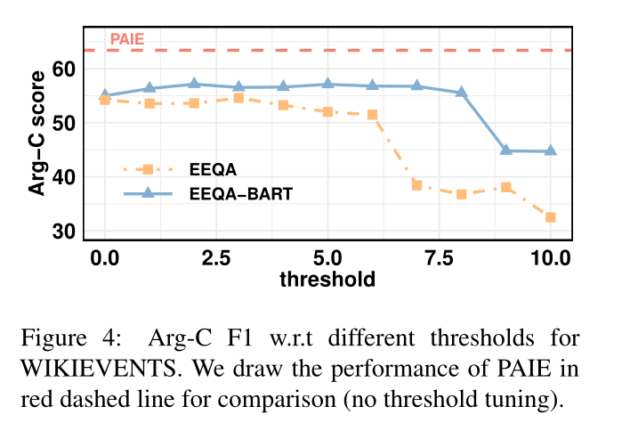 多个论元可以在同一个事件中共享相同的角色。在本节中,我们表明PAIE在效率和有效性方面都优于基于QA的模型。