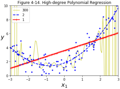 Of course, this high-degree Polynomial Regression model is severely overfitting the training data, while the linear model is underfitting it. The model that will generalize best in this case is the quadratic model. It makes sense since the data was generated using a quadratic model, but in general you won’t know what function generated the data, so how can you decide how complex your model should be? How can you tell that your model is overfitting or underfitting the data?