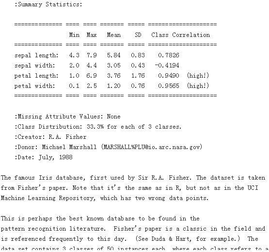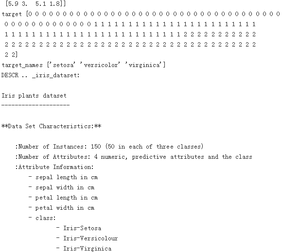 for k,v in iris.items():print(k,v)