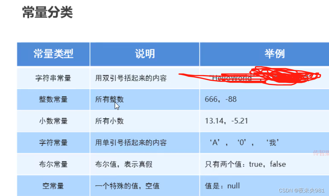1).常量:程序执行过程中,其值不会发生改变的数据。