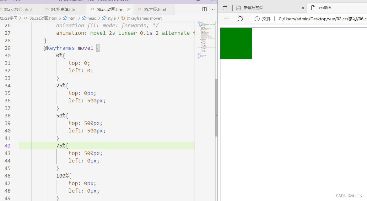 div{width: 300px;height: 300px;/* border: 1px solid rebeccapurple; *//* float: left;浮动 *//* 子元素绝对定位 父元素相对定位所有子元素默认的初始位置在左上顶点通过left和top控制x和y轴距离 */}