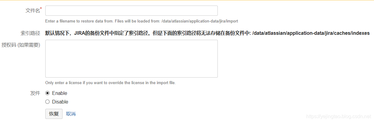 备份完后拷贝到目的机的/data/atlassian/application-data/jira/import目录下进行恢复