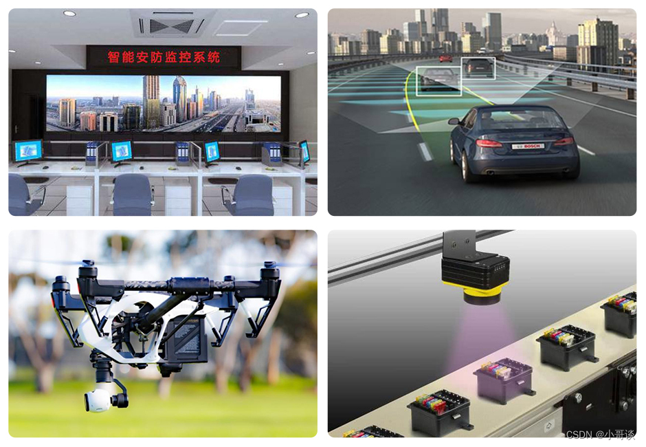 - 工业检测:图像识别技术在工业领域的应用,主要用于能够代替人眼的计算机系统。在高速、大批量、连续自动化生产流水线,往往需要视觉系统进行质量检查、零件辨识和尺寸测量;
