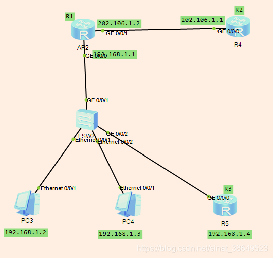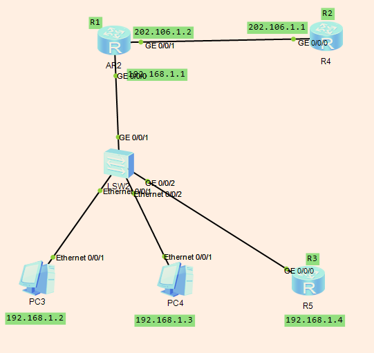 [R1-GigabitEthernet0/0/1]ip add 202.106.1.2 30